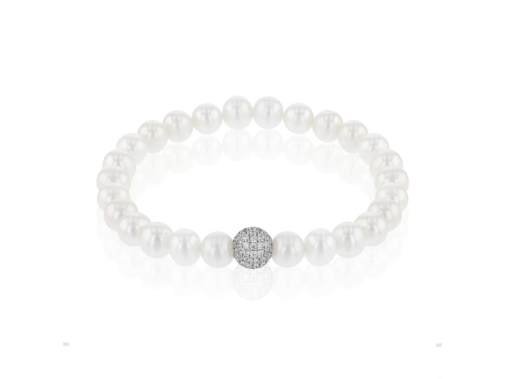 Náramek ze sladkovodních perel s ozdobnou stříbrnou kuličkou.