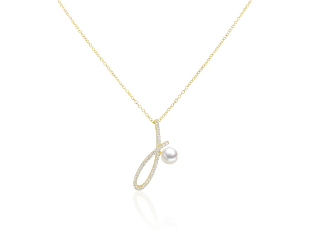 Stříbrný pozlacený náhrdelník se sladkovodní perlou ozdoben zirkony.